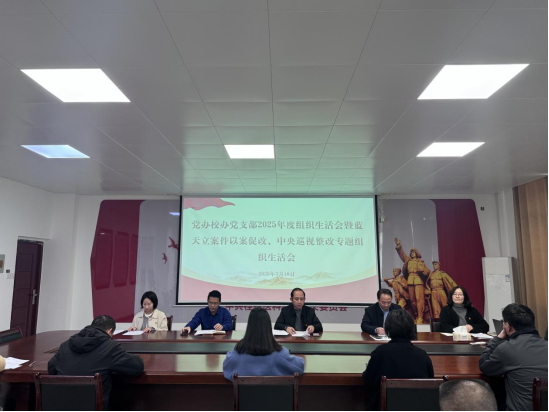 3月10日下午,党办校办党支部召开2025年度组织生活会,机关党委书记胡友根列席指导,党支部书记彭靖主持会议。