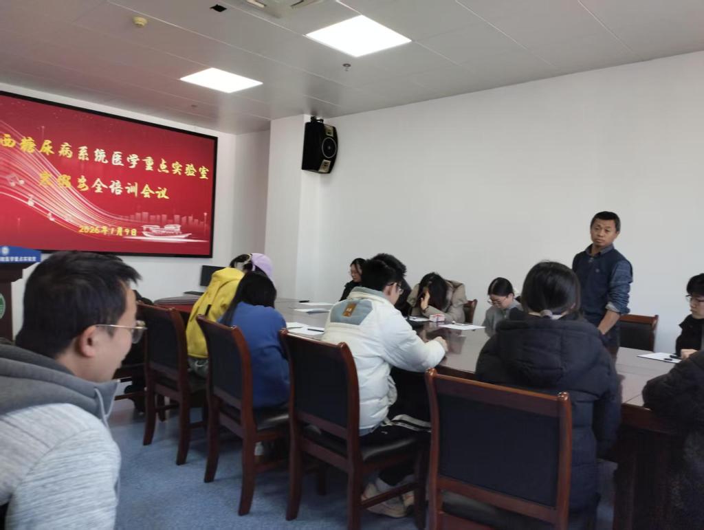 安全无小事,责任大于天。为切实保障寒假期间实验室安全稳定运行,强化留校科研人员的安全防护意识与应急处置能力,2026年1月9日上午,广西糖尿病系统医学重点实验室精心组织开展寒假前实验室安全教育培训。全体寒假留校开展实验的研究生、新入实验室同学全员参与,实验室全体教师到场全程指导,为假期科研工作筑牢安全基石。