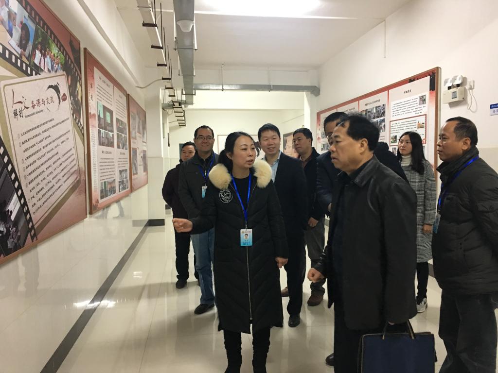 于兰(左一)为专家讲解人文板报
