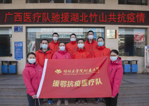 韦金娜(右一)与驰援湖北竹山抗疫团队合影