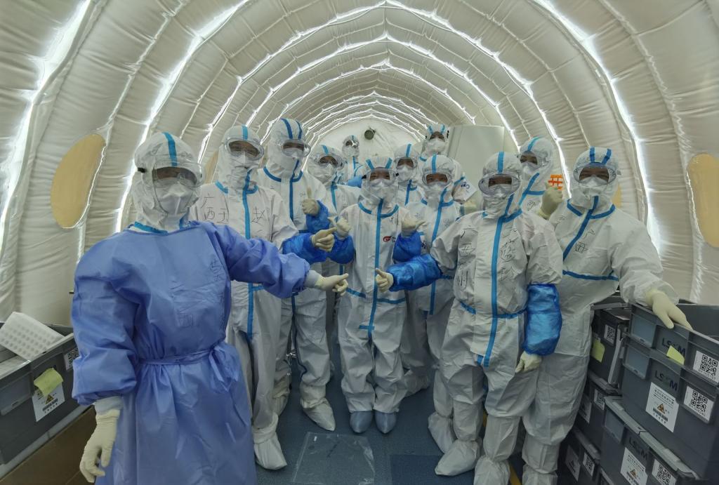 新冠病毒肆虐,临床医务人员不忘初心,勇担使命,在为生命逆行的这条战线上,在桂林医学院附属医院抗击新冠疫情一线,还有一支直面病毒、不畏风险、默默战斗在一线的由60名成员组成的检验科团队,他们是防疫尖兵、也是“侦察兵”,他们站在抗疫工作的前线,与病毒近距离接触,承担着桂林地区的新冠病毒及相关病原体实验室检测工作。走进检验科抗疫一线,其中一位身影格外忙碌,正是检验科副主任杨峻同志。