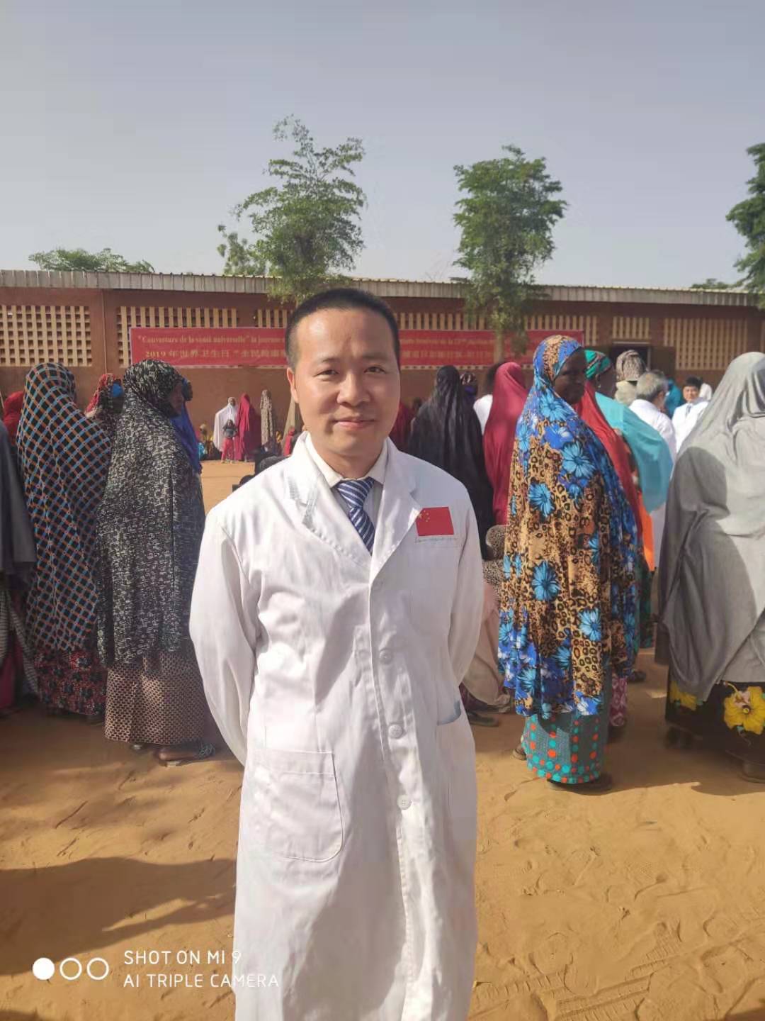 整整两年的第一书记任期结束后,又主动报名援非,经过培训考核,光荣地成为了中国(广西)援尼日尔医疗队一员,于2018年1月27日到达西非尼日尔首都尼亚美,开展为期一年的医疗援外任务,后主动留任一届,如今是第21批援尼日尔医疗队的一员,在遥远的非洲大陆呆了快三年了,已经在这里过了三个终身难忘的春节。尼日尔条件还是非常艰苦的,气候炎热,疟疾流行,物资缺乏,经常停电少雨,网络奇差,恐怖袭击时有发生,患过三次疟疾,但是他都克服了下来,有过两年的第一书记经历,一般的苦都不怕,但是远离祖国亲人,还是时有感觉到孤独和寂寞,只能自我调节,把更多的心放在医院和队里的其他工作去。在非洲近三年,他始终秉承“救死扶伤,大爱无疆”方针,救治和护理过很多尼日尔人民,帮助当地医院开展了不少新式手术,如腹腔镜各类手术,骨科C臂机定位下各类手术,把国内一些先进技术传授给当地医护人员,得到当地同事的认可。平时休息在驻地,利用在农村学会的技术,帮助大家种植各类蔬菜,让大家在蔬菜奇缺的季节依然有绿色蔬菜吃。虽然远在非洲,也始终牵挂原来下乡的村庄,经常支助和帮助他们推销农产品。