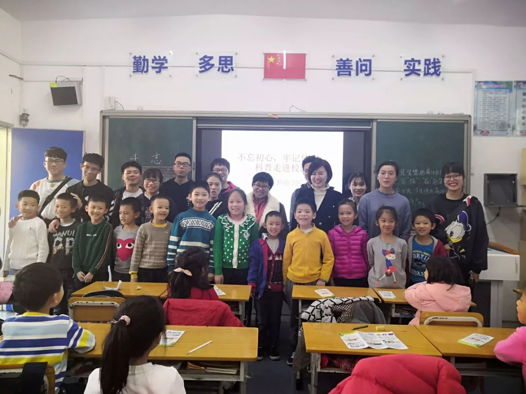颜玉梅(二排右一)同学在乐群小学寄生虫知识宣讲活动