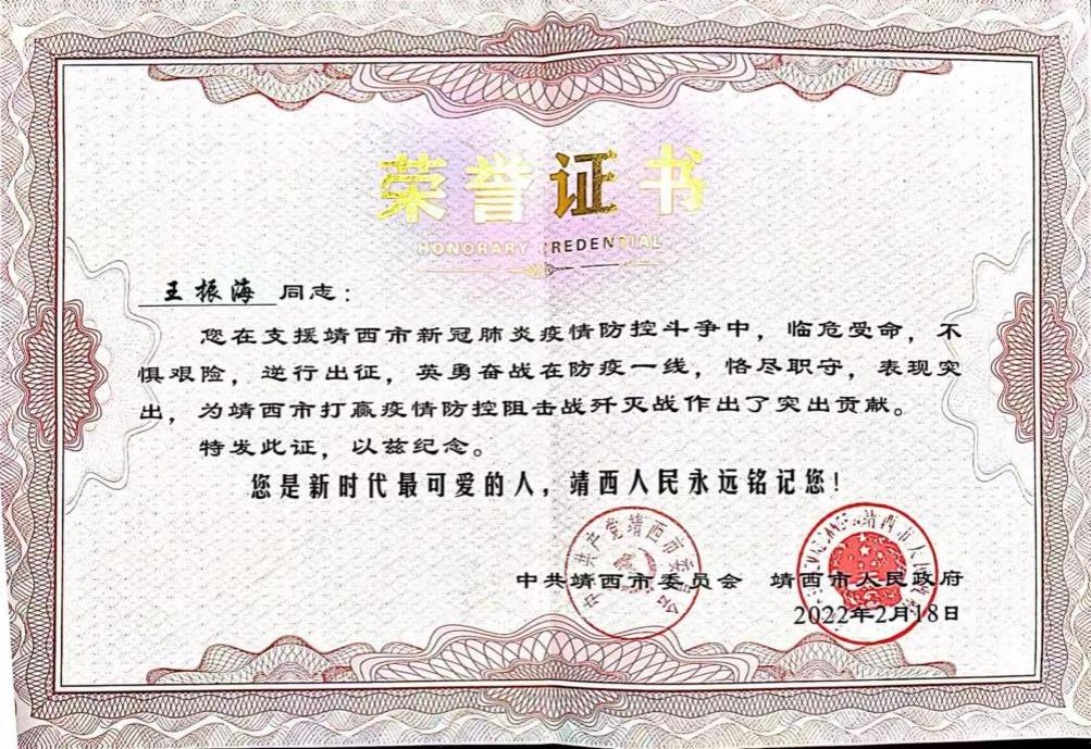 2022年2月,在新冠肺炎疫情期间志愿参与靖西市疫情防控工作