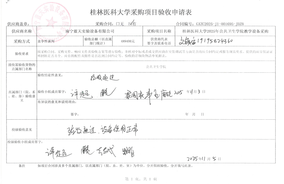 三、采购项目合同名称:桂林医科大学2025年公共卫生学院教学设备采购项目合同