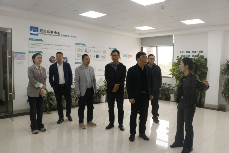 2025年12月6日,桂林医科大学检验与生物技术学院院长宋家乐教授、科研平台处副处长姚冬教授、产学研合作处副处长李洪涛教授及重点实验室主任刘征研究员,拜访了广西金域医学检验实验室有限公司,双方领导与专家围绕基础研究与临床转化的战略布局,以及精准诊断领域的前沿热点议题,展开了热烈而高质量的深入探讨。双方一致表示将继续秉持“开放、融合、共享”的合作理念,携手探索医学检验领域的新技术、新模式与新路径,加速创新成果的落地与转化,推动精准诊断服务惠及广西更广泛的高发疾病人群,为实现“健康广西2030”规划的美好愿景贡献力量。此次交流为重点实验室建设与长远发展进一步凝聚了共识,奠定了坚实基础。