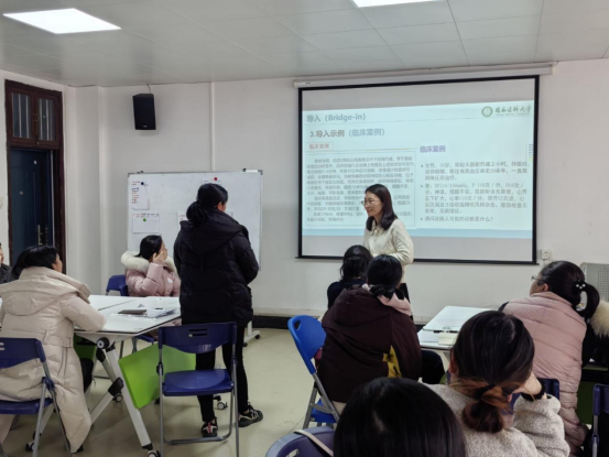 本次培训围绕BOPPPS教学模式在护理教学中的有效应用展开,内容涵盖有效教学理念讲解、课堂导入与前测设计、教学目标书写训练、参与式学习活动设计、教学设计实战演练及反思总结等环节。培训通过讲授、讨论、示范与演练相结合的方式,引导学员将自身授课内容与BOPPPS教学模式深度融合。在教学训练与实战环节,培训教师结合具体教学案例,对学员的教学设计进行针对性点评与指导,切实提升培训实效。参训教师一致认为,本次工作坊培训紧贴教学实际,操作性强,有助于系统理解BOPPPS教学模式的核心理念和实施路径,为后续试讲及课堂教学设计提供了清晰思路和有效方法支持。