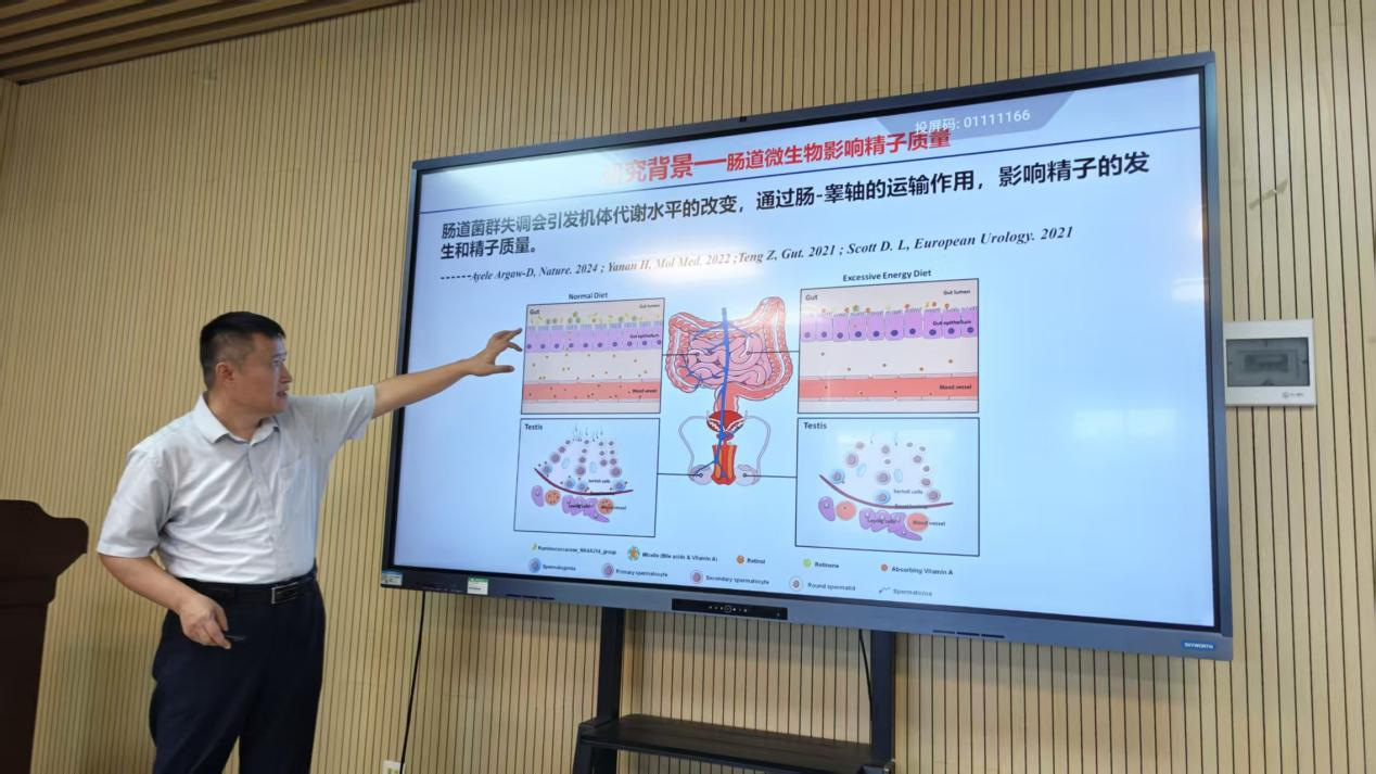 讲座聚焦多组学技术在生殖医学中的应用。刘庆友介绍了肠道菌群通过“肠-睾丸轴”影响精子活力的新机制,其团队通过多组学技术发现特定菌群可作为弱精子症诊疗新靶标。杨一华从基因组学角度解析卵巢衰老特征,指出DNA修复能力下降是卵母细胞质量衰退的关键因素。邓彦飞首次证实LPS可诱导卵泡液色氨酸代谢紊乱,进而损害动物繁殖性能。雷小灿副教授则发现吡咯喹啉醌能通过调控PCSK9-NLRP3通路改善肥胖相关睾酮合成障碍。