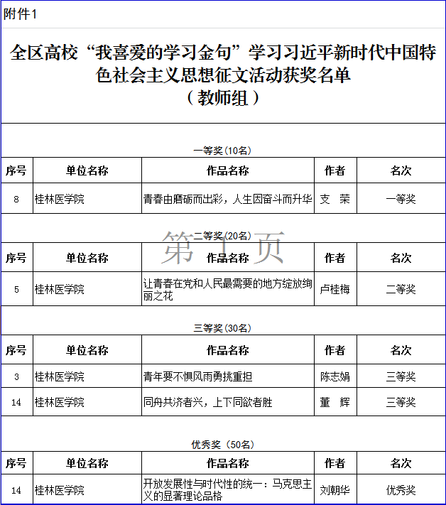 近期,自治区党委教育工委公布了全区高校“我喜爱的学习金句”学习习近平新时代中国特色社会主义思想体会征文活动获奖名单。我校师生参选作品获得多项荣誉,其中教师组荣获一等奖1项,二等奖1项,三等奖2项,优秀奖1项;学生组荣获一等奖1项,二等奖1项,三等奖1项。