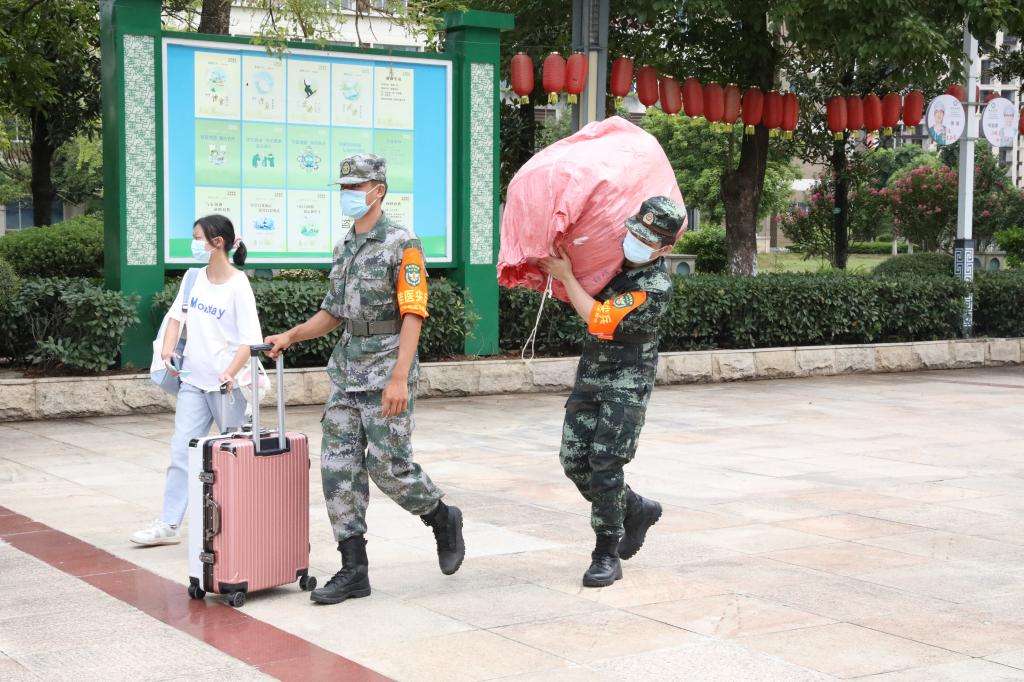 退役大学生志愿者为返校学生搬运行李
