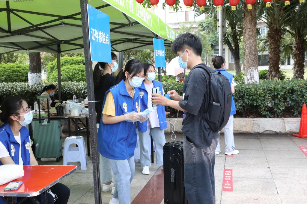 体温测量,健康码扫码核验,身份校验,行李消杀……8月26日-28日,我校学子秩序井然错峰返校。学校严格执行上级有关防疫规定,积极做好各项防疫措施,严防死守,筑牢校园防疫“第一道防线”。我校领导到现场检查学生返校工作并看望工作人员。