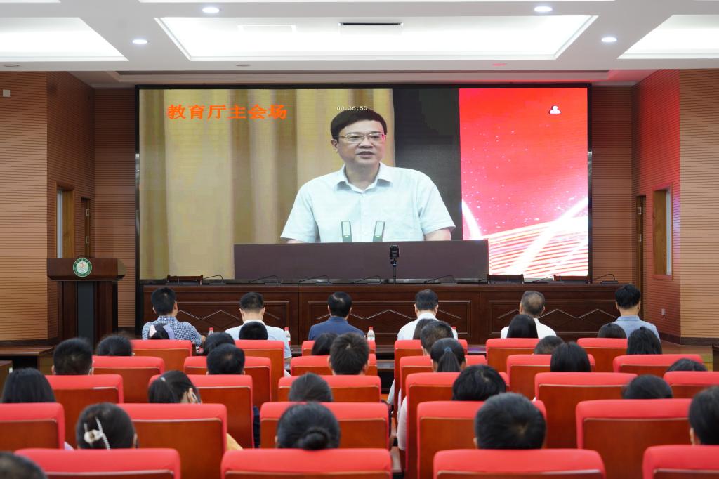 9月8日上午,自治区教育厅举办2021年全区优秀教师先进事迹报告会,自治区党委教育工委书记,自治区教育厅党组书记、厅长刘友谊出席报告会并致辞。我校在临桂校区明德楼101会议室设视频分会场。在家校领导张志勇、王赣华、辛懋、马献力、谢忠文、周国增,部分教师、学生代表参加会议。