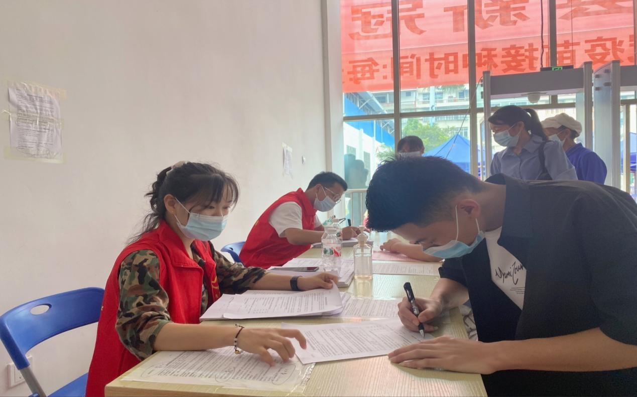 王乙娟在大型疫苗接种点志愿服务工作现场图