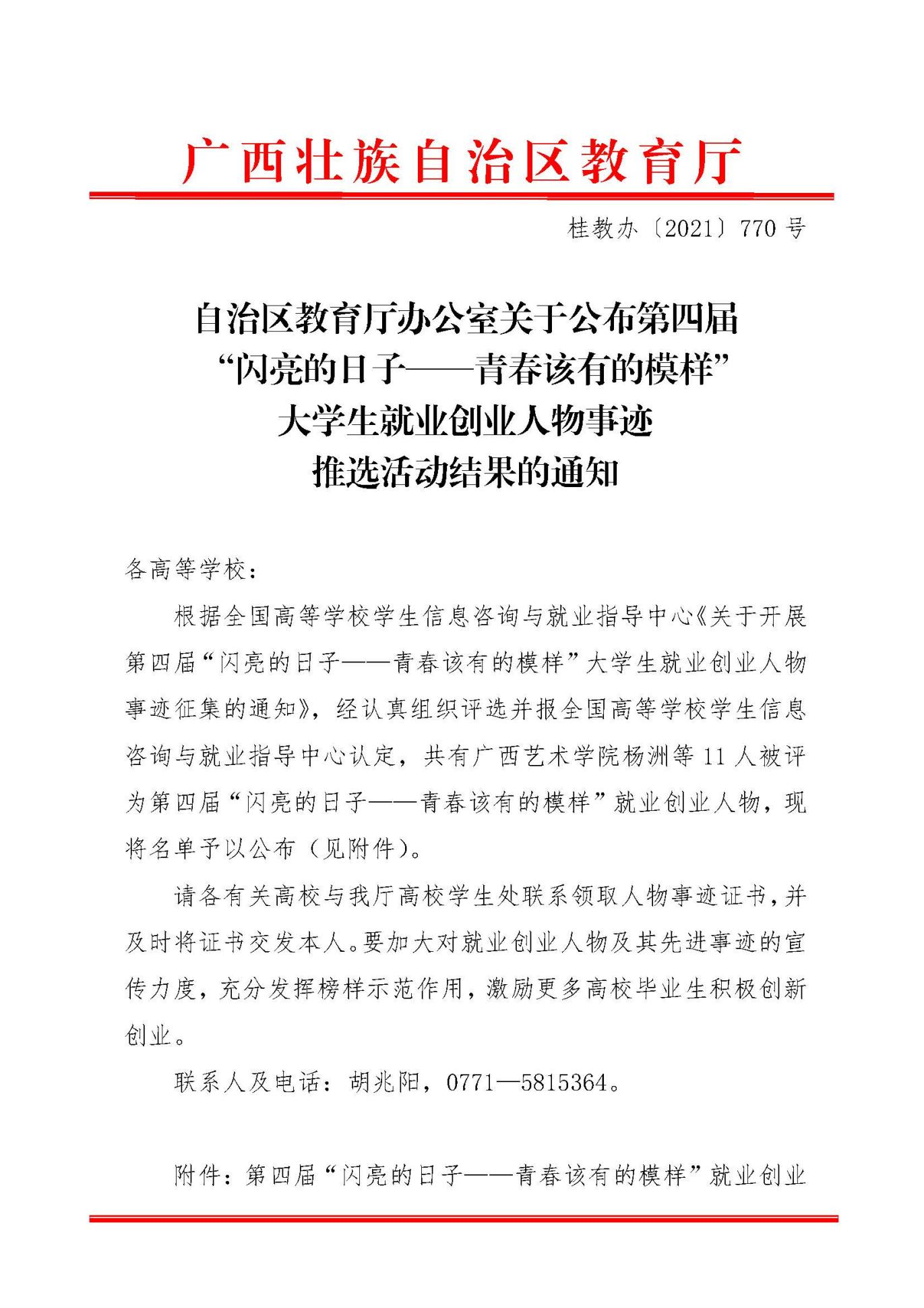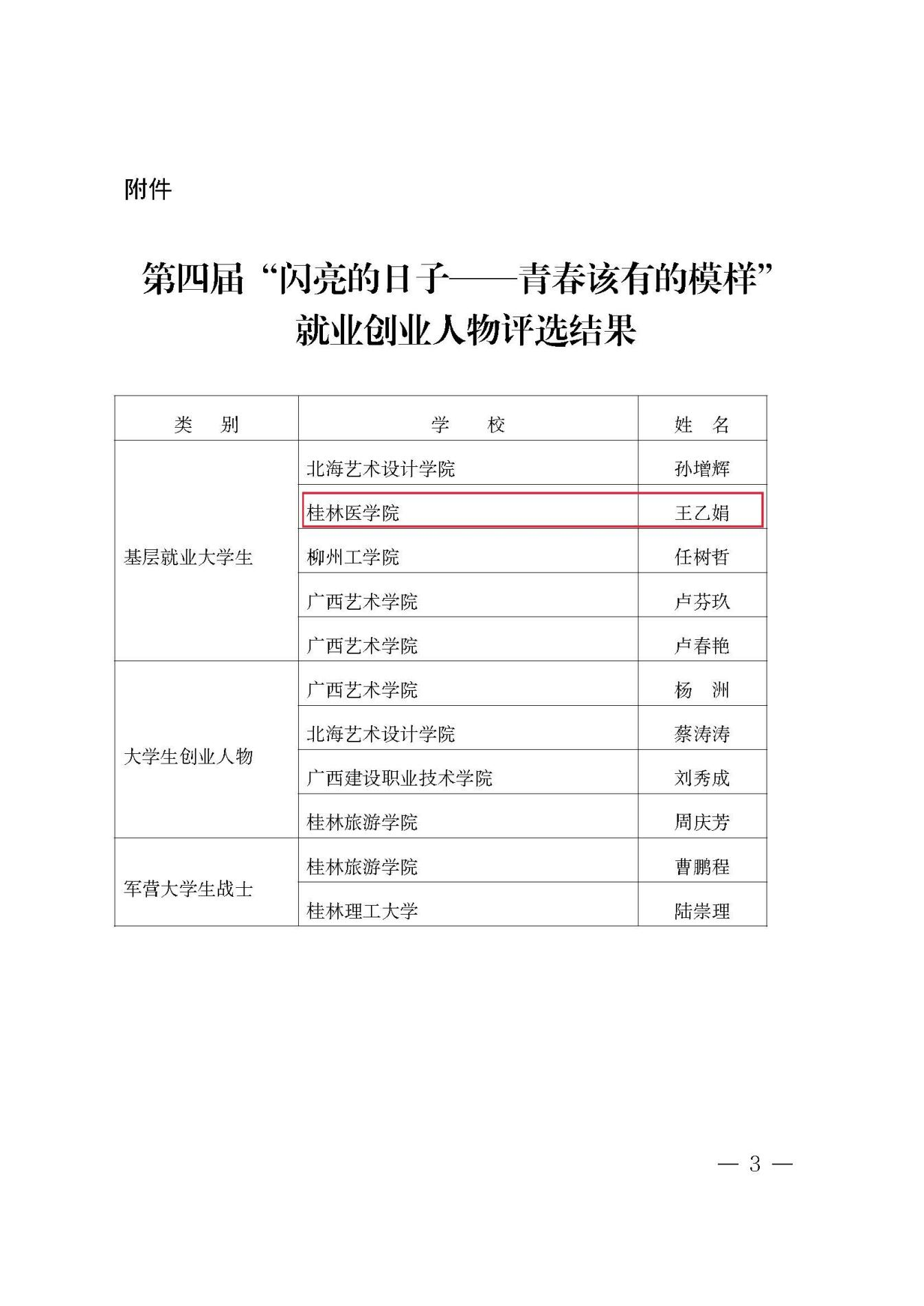 根据全国高等学校学生信息咨询与就业指导中心《第四届“闪亮的日子——青春该有的模样”大学生就业创业人物事迹推选活动结果的通知》,经学校积极申报,近日,自治区教育厅下发《自治区教育厅办公室关于公布第四届“闪亮的日子——青春该有的模样”大学生就业创业人物事迹推选活动结果的通知》,我校2020届毕业生王乙娟获评全国第四届“闪亮的日子——青春该有的模样”大学生就业创业人物(基层就业大学生)。