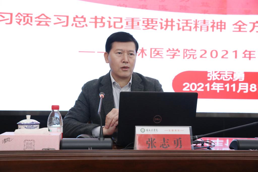 张志勇首先带领参会人员对中央人才工作会议精神进行了深入学习。他结合习近平总书记在中央人才工作会议上的重要讲话内容,深入阐述了我校在新的发展阶段应该如何培养、引进、用好人才这一重要问题,提出了一系列政策举措,指明了未来我校人才“引、培、育、用”路径。