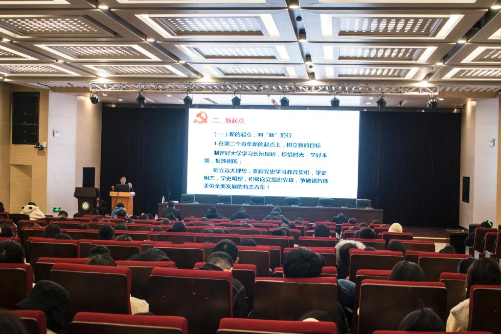 曾凡能首先带领大家从中华民族“站起来,富起来,强起来”的过程中领悟了中国共产党的初心和使命。随后,从“新征程,新起点,新气象”三个方面详细阐述了中国共产党为什么能带领中国人民走向胜利、发展、繁荣,旁征博引、深入浅出地分析了诸多热点问题,全面深刻地剖析了中国共产党百年来成长壮大的历史原因。曾凡能老师循循善诱的讲话,激励着在座同学紧跟党的步伐,在学习中锻炼成长,增长才智,传承红色基因,谱写绚丽人生。