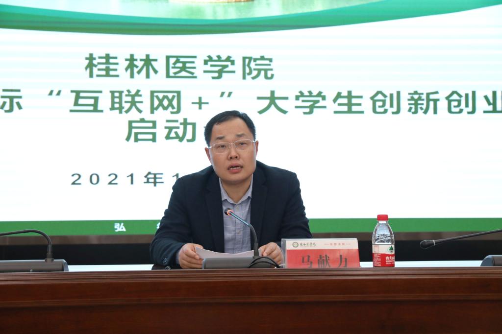 12月21日上午,我校在临桂校区明德楼101会议室召开第八届中国国际“互联网+”大学生创新创业大赛启动会,主要任务是学习贯彻党的十九届六中全会精神,认真总结近三年全校创新创业教育工作,全面部署2022年创新创业教育工作。校党委常委、副院长马献力出席会议。教务处、科技处、研究生学院、马克思主义学院、校团委、学生工作处(部)、招就处、科学实验中心等部门负责人,各二级学院院长、分管创新创业教育工作的副书记和副院长,以及第七届“互联网+”大赛广西选拔赛获奖项目团队的师生代表参加了会议。会议由创新创业教育学院院长主持。