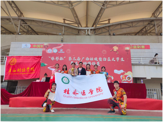 12月20日—23日,由广西学校体育卫生艺术学会主办,广西财经学院、广西学校体育卫生艺术学会龙狮分会承办的第三届广西壮族自治区大学生舞龙舞狮锦标赛在广西财经学院举行,来自全区27所高校共700多人共聚一堂,此次比赛我校龙狮队派出了8名运动员参加了传统舞龙项目的比赛。比赛中队员沉着应对、稳定发挥,赛出水平、赛出风格最终荣获本科组传统舞龙第三名。