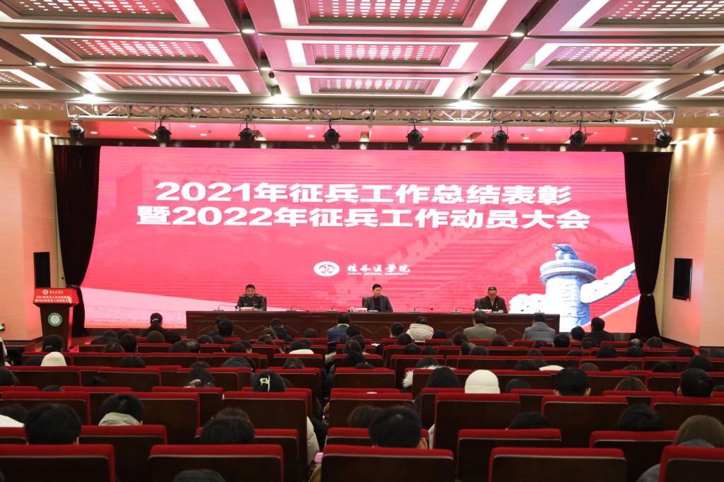 12月30日下午,学校在公共教室北楼多功能报告厅召开2021年征兵工作总结表彰暨2022年征兵工作动员大会。校党委书记、院长、校征兵工作领导小组组长张志勇,临桂区委常委、人民武装部政治委员王晓忠上校,学校征兵工作领导小组成员、征兵工作站全体人员、2022届毕业班辅导员、部分学生代表出席会议。会议由校党委常委、副院长辛懋主持。