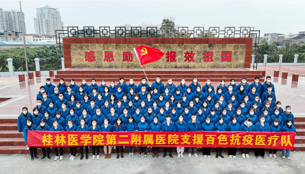 百色疫情发生后,牵动着千万人的心,一场“与病毒抗争,与时间赛跑”的疫情防控阻击战在广西打响。我校师生闻令而动、主动请缨、逆向而行。221名学生第一时间参与抗“疫”志愿服务,两所直属附属医院迅速响应上级号召,派出五批医护人员共437人(其中有70%毕业于桂林医学院)奔赴百色。桂医人汇聚起共克时艰的磅礴力量,满腔热血为百色的父老乡亲筑起保障生命健康的“铜墙铁壁”,用行动诠释了“弘德善医”的校训精神。
