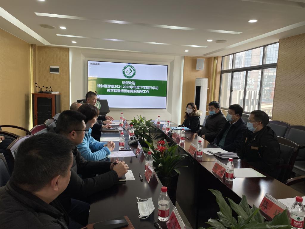 为保证新学期教学工作正常运行,根据《桂林医学院教学检查制度》的要求,我校组织开展了本学期期初教学检查工作。2月21日-28日,校领导张志勇、王赣华、陈旭、辛懋、马献力、谢忠文、李清华、周国增,总督学孙莉,带领教育评价与教师教学发展中心、教务处、院办、人事处、学工处、国资处、后勤处、保卫处等相关职能部门领导和各二级学院(系、部)负责人组成教学检查组,分组对临桂、乐群、东城三校区的所有二级学院(系、部),以及南溪山临床医学院、第二临床医学院和第五临床医学院开展期初教学检查工作。