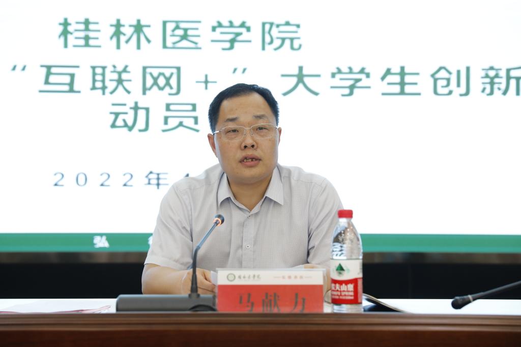 马献力对我校备赛情况和是师生辛勤付出给予充分肯定。强调“互联网+”大赛将立德树人理念融入双创教育中,实现育人育才与全面发展相统一,大赛成果已成为本科教学评估体系、一流学科建设中的考核指标,“互联网+”大赛获奖数成为考核必选项,是展示学校创新创业教育教学改革成效的重要窗口。马献力要求,一要精准措施,科学安排,全面做好“互联网+”大赛的各项工作。各二级学院要加强指导服务,鼓励高水平教师参与竞赛指导,促进项目与高水平的科研成果和专利相结合。要能够主动出击,寻找挖掘优秀项目与人才,带领学生创新创业,提高参赛项目质量。二要有时不我待,只争朝夕的紧迫感和责任担当。各二级学院要克服疫情带来的种种困难,及时认领下达的指标任务、研究落实措施;各二级学院院长要了解自己部门的重点培育项目,积极为师生创造实验条件,积极联系企业加快项目落地进程等。三要推进项目协同育人,提高新时代人才培养工作的再认识。各二级学院要注重以项目协同引领推动创新创业人才培养,深挖大学生创新创业训练计划项目的研究成果,将符合新医科建设理念和要求的项目进行挖掘和培育,鼓励项目团队跨学校、跨学科、跨专业、跨年级组队参赛,挖掘已创业、待创业或有科研经历、专利技术的学生参赛。