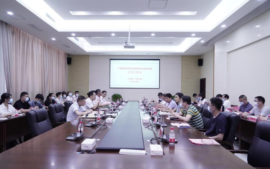 汇报会上,专家组副组长、广西医科大学科技处宗少晖副处长介绍了本次检查工作的背景、重点和流程。首先由我校国资处处长向专家组作实验室安全工作汇报,随后专家组对科学实验中心、基础医学院、临床医学院、药学院、智能医学与生物技术学院、公共卫生学院、临桂临床医学院、实验动物中心等教学、科研实验室及实验废弃物暂存柜进行实地检查,然后详细查阅校院两级实验室安全管理档案,并分别对管理人员和学生进行了座谈。最后,由专家组组长马献力主持检查反馈会,右江民族医学院科技处副处长王居平专家对现场检查情况进行反馈。