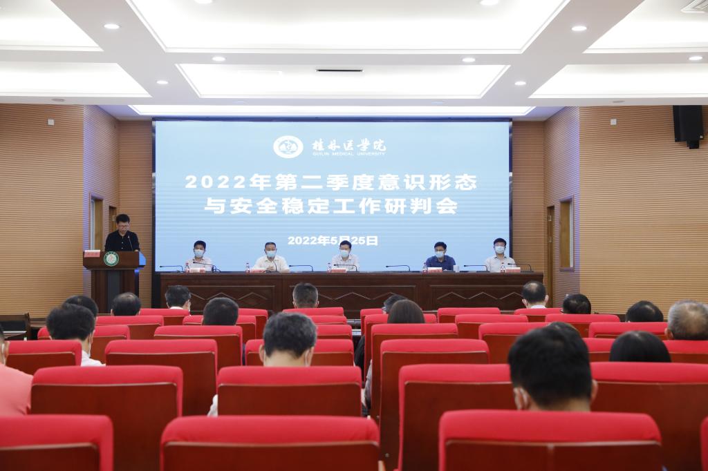 5月25日,我校在临桂校区明德楼101会议室召开2022年第二季度意识形态与安全稳定工作研判会。学校领导张志勇、王赣华、辛懋、谢忠文、周国增出席会议,各二级党委书记、副书记、学校各单位、各部门主要负责人参加会议。会议由校党委常委、副院长辛懋主持。