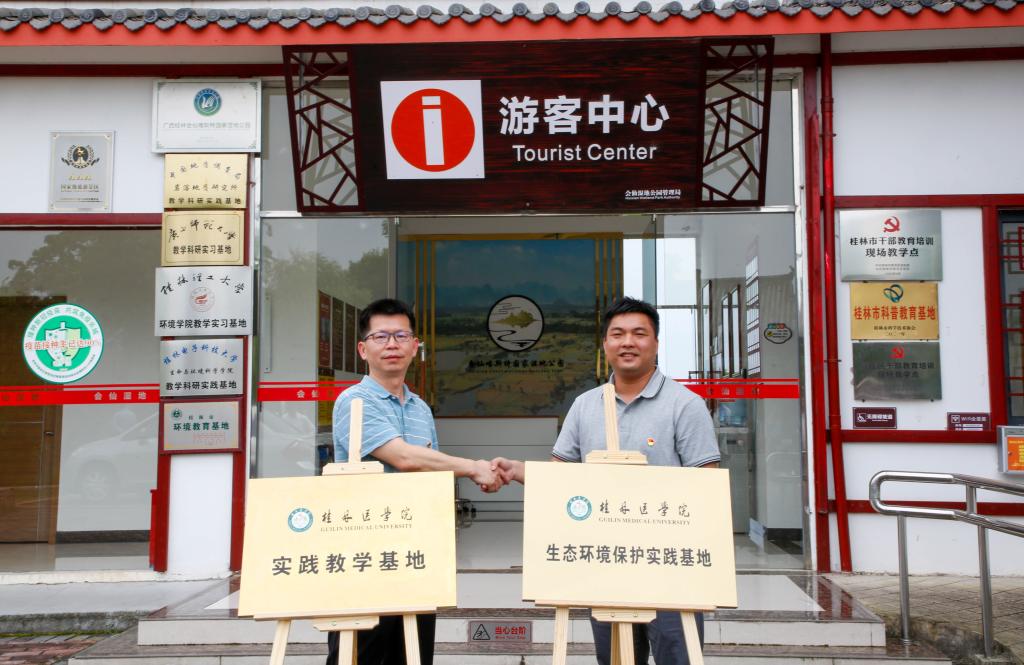 5月18日,我校与会仙国家湿地公园保护中心共同举行“生态环境保护实践基地、实践教学基地”签约授牌仪式。我校绿色学校创建工作领导小组办公室、国有资产管理处、公共卫生学院、药学院等相关领导及工作人员、学生代表共同参加了此次签约授牌仪式。
