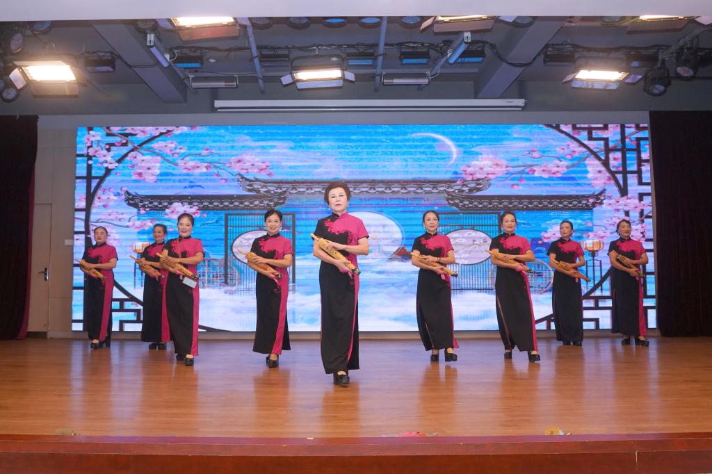 随后,老同志们精神饱满、载歌载舞,献上一台精彩的文艺汇演。文艺汇演在合唱《我和我的祖国》中拉开序幕,老同志精心编排的合唱、独唱、舞蹈、舞龙、朗诵、旗袍走秀等节目轮番上阵,表达了老同志对党和祖国的热爱之情,展现了学校离退休教职工初心不改、昂扬向上、老有所为、老有所乐的精神风貌。大学生艺术团、街舞协会带来的优雅古典舞和炫酷街舞,赢得观众阵阵掌声。联欢会上,节目精彩纷呈,还穿插了抽奖互动环节,洋溢着喜庆祥和的节日氛围。在全体人员高唱《歌唱祖国》的嘹亮歌声中,联欢会圆满落幕。