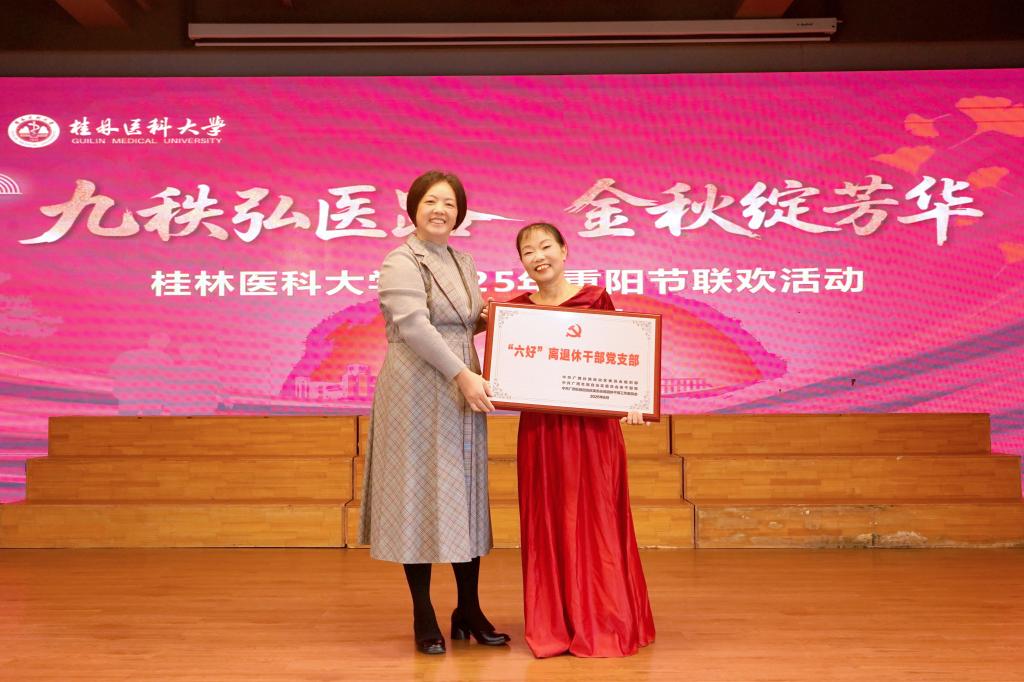 金桂飘香漫重阳,浓情关怀送安康。为弘扬中华民族尊老、敬老、爱老、助老的传统美德,丰富离退休职工的精神文化生活,10月29日上午,我校在乐群校区综合楼举办“九秩弘医路 金秋绽芳华”重阳节联欢会。学校党委副书记、校长曾小云,党委常委、副校长覃克强及学校有关职能部门、二级学院负责人与离退休老同志欢聚一堂,共庆2025年重阳佳节。