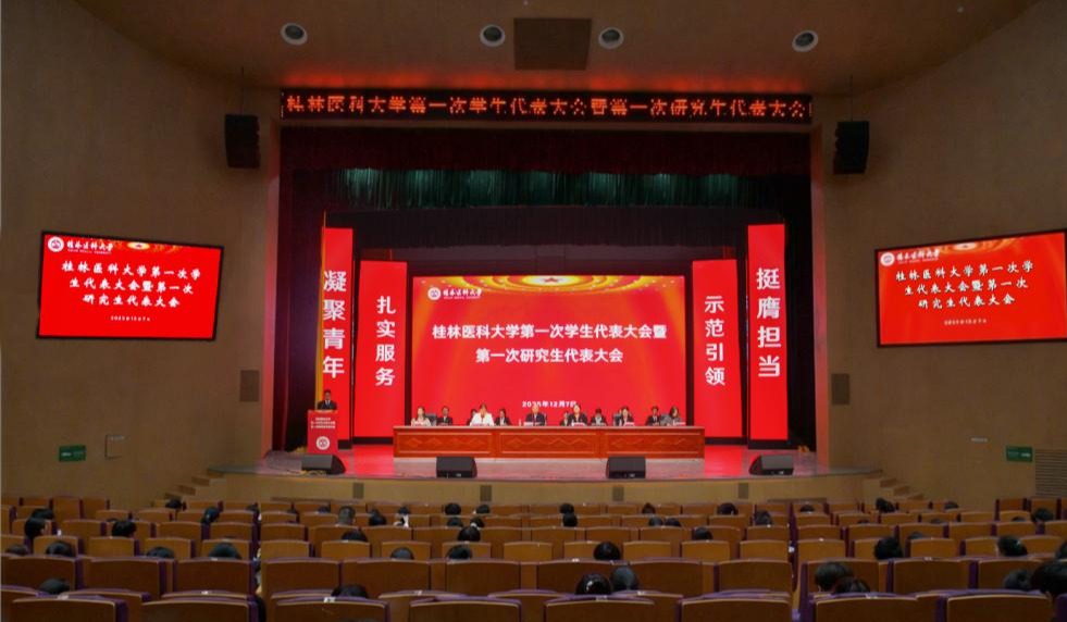 12月7日,桂林医科大学第一次学生代表大会暨第一次研究生代表大会在临桂校区大学生艺术中心召开。党委常委、副校长覃克强,学生工作部(处)、研究生工作部和校团委相关部门负责人及教师代表、校内外学生代表两百余人参加大会。