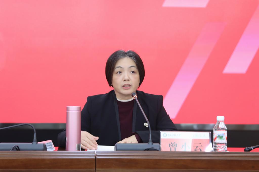 12月10日下午,我校在明德楼101会议室召开2026届毕业生就业创业工作会议暨征兵工作动员会。学校党委书记马献力、校长曾小云等在家校领导出席会议,学校毕业生就业创业工作领导小组成员、学校征兵工作领导小组全体成员,各院系主要负责人、分管学生工作负责人,2025届和2026届毕业班辅导员以及学生工作部(处)、武装部全体人员参加会议。会议由副校长覃克强主持。