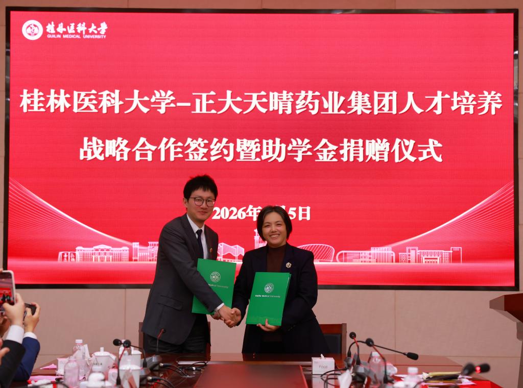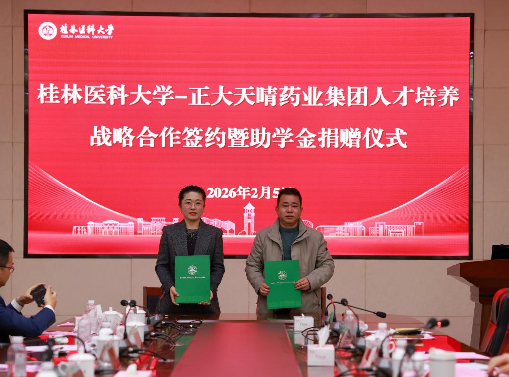 会上,双方围绕药学人才协同培养、产学研深度融合发展等议题深入交流,并签署《桂林医科大学与正大天晴药业集团股份有限公司人才培养战略合作协议》及《助学金捐赠协议》,标志着双方合作迈入实质性推进阶段。