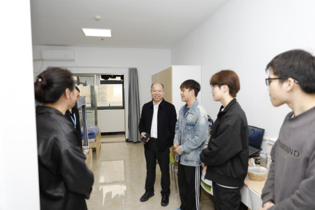 覃克强一行深入医院城东分院,实地查看学生宿舍、教学门诊、食堂等场所,细致了解学生生活保障、教学环境及学习生活情况。在与学生交流时,覃克强关切询问大家的学习进展、日常起居和职业规划,鼓励同学们珍惜实践机会,虚心向一线医护人员学习,将理论知识运用到临床实操中,锤炼专业技能,努力成长为医德优良、业务扎实的医学人才。