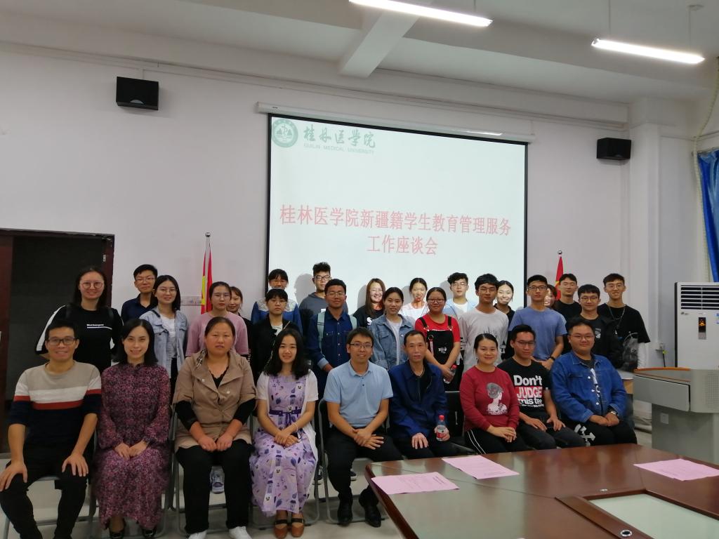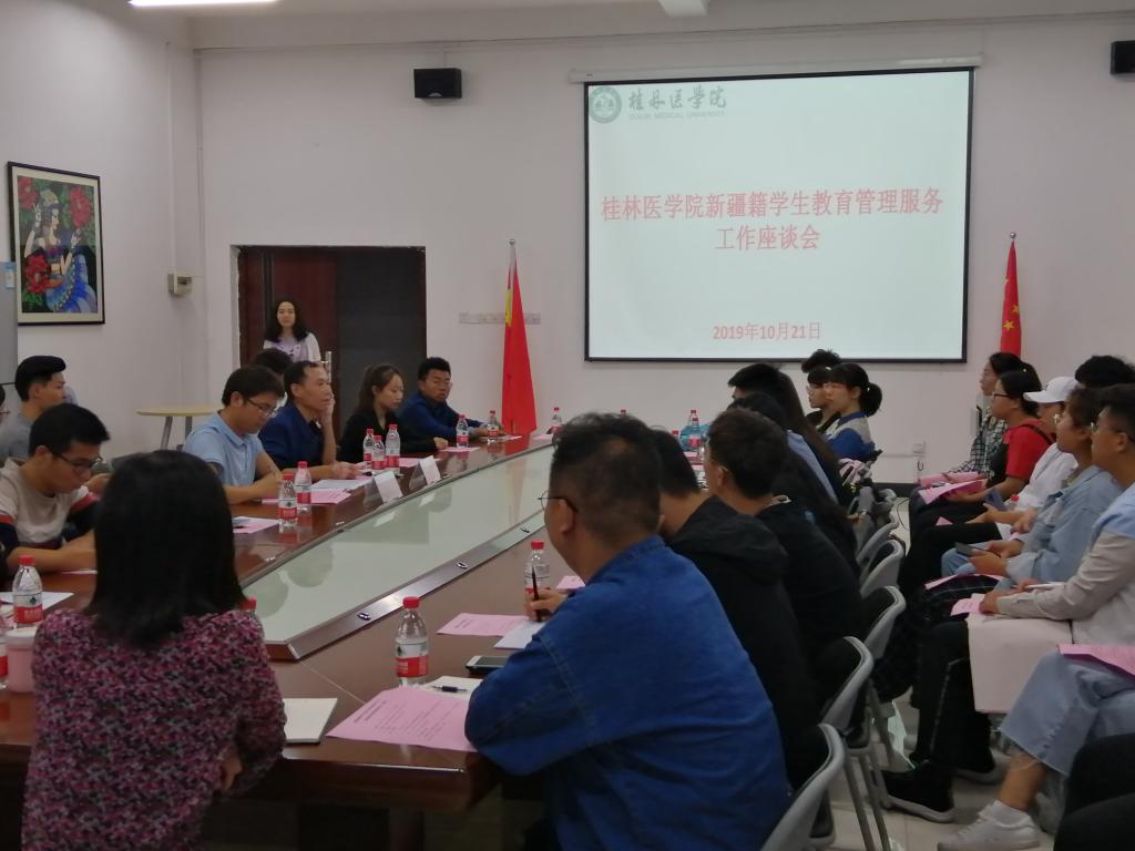 10月21日晚上,我校在临桂校区大学生活动中心409会议室召开新疆籍学生教育管理服务工作座谈会。新疆内派广西服务管理兼管我校教师詹建立、学生工作部负责人、本科生和研究生辅导员代表、新疆籍学生参加了此次座谈会。