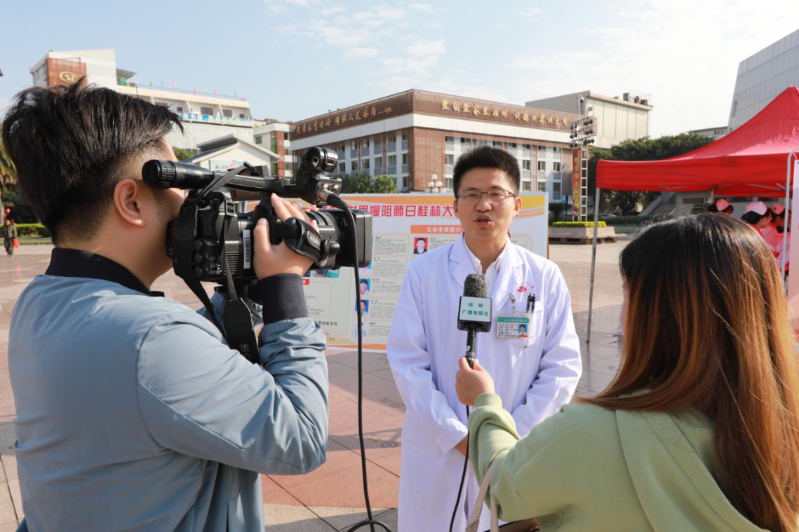 义诊过程中,我院呼吸与危重症医学科主任马礼兵博士还代表义诊专家接受了桂林市电视台的采访,旨在通过媒体力量进一步宣传慢阻肺防控知识,真正做到防控慢阻肺、你我携手行。