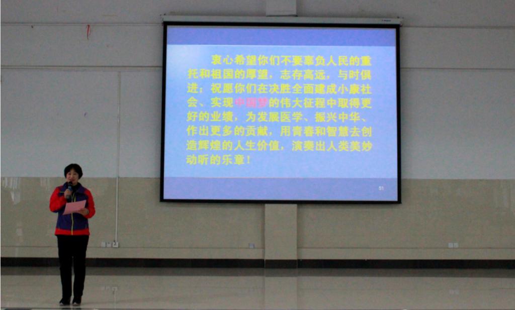 陈重阳教授以“为实现中国梦而勤奋学习立志成才”为主题,向同学们阐述中国梦与学生之间的关系。并结合医学理念,以幽默风趣的方式向同学们作报告,让同学充分了解了什么是医学的定义和其特性,深入了解真正的医学。最后,他希望同学们能够“志存高远,与时俱进,为实现伟大中国梦而努力奋斗成才”。