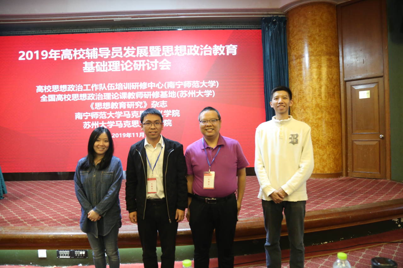 2019年11月23日至24日,由南宁师范大学和苏州大学等举办的2019年高校辅导员发展暨思想政治教育基础理论研讨会在南宁召开。来自中山大学、华南理工大学、中共广西区委党校等14个省市自治区的专家学者、学工领导和高校一线辅导员代表等200多人参加了专题研讨会。我校4位学工干部参加会议。
