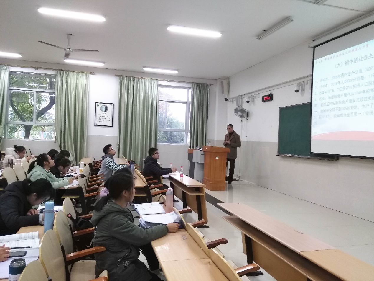 课上,蒋尧传以解读“道路自信、理论自信、制度自信、文化自信”为引言,从“世界社会主义的起源与演进”、“世界社会主义现状”、“中国特色社会主义事业发展前景”三个部分内容结合国内外的时事政事为同学们进行讲解。他指出,中国青年是国家的未来,是社会主义建设者和接班人,首先要在思想认识上对中国特色社会主义理论体系发展脉络、内涵、优越性等充分理解、充分认同,方能在学习上以及今后的工作中少走弯路、错路。
