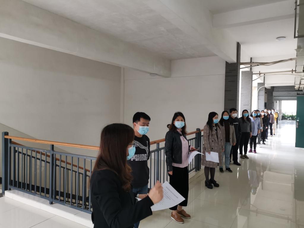 为落实细化学校疫情防控应急预案,规范应急处置流程,增强实战操作能力,安全平稳有序复学,4月17日下午15:30,大学外语部在临桂校区教学南楼S406组织开展了教师课堂教学过程中学生发热处置演练。大学外语部全体教师参加了此次演练。