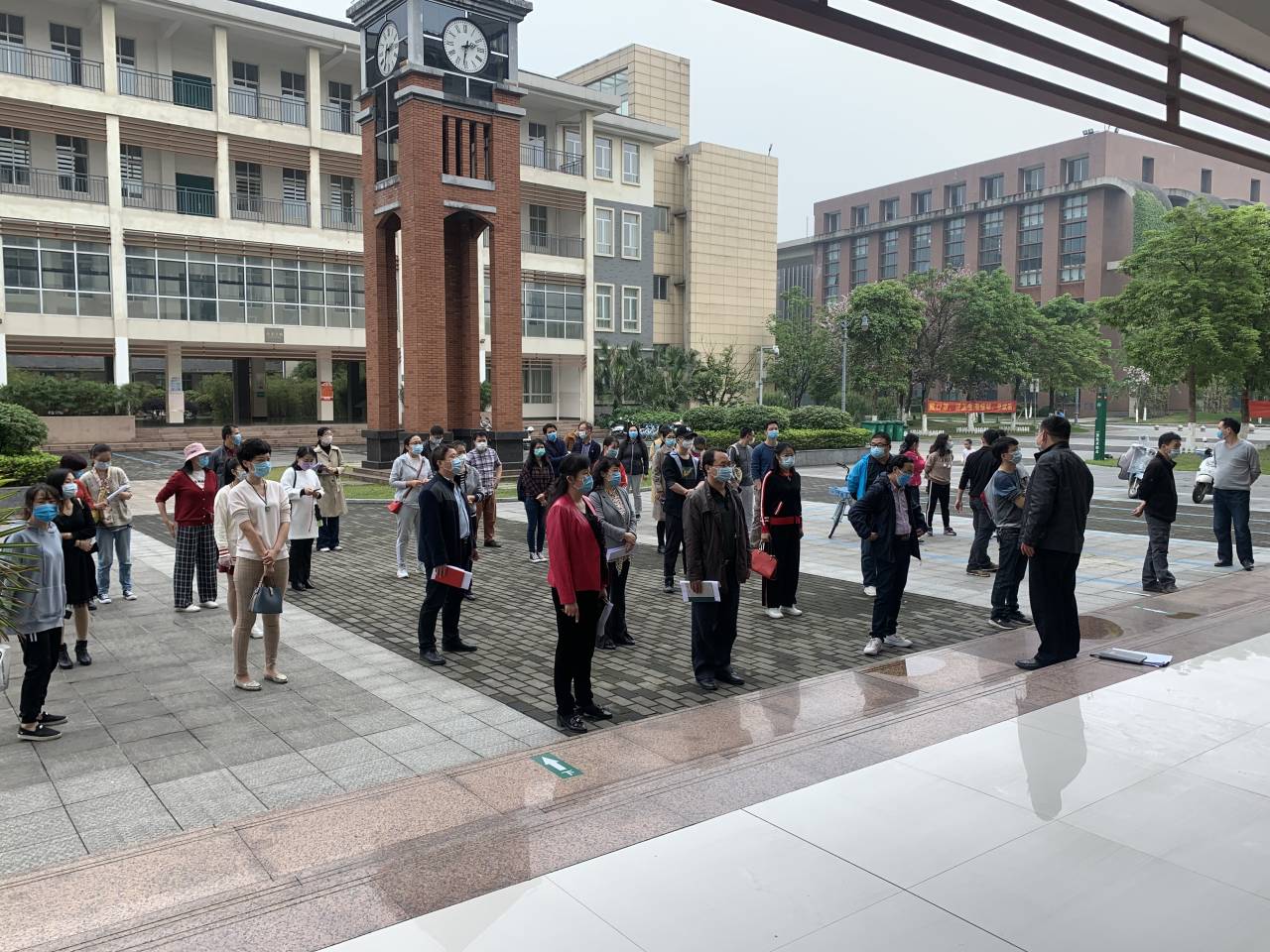 演练前,学院院长石武祥向全体教职工传达学校防控办的有关文件精神,学习了人文与管理学院教师课堂教学疫情防控工作方案、教师课堂教学过程中学生发热处置流程并对此次演练工作进行了任务分工。本次演练包括师生有序进入教室并按规定入座、班级学生体温报告、学生忘记戴口罩、课堂中学生出现身体异常情况紧急处理等重要环节。所有演练教师遵照流程规范地完成了此次演练任务。学院党委书记邓娜对相关演练环节提出了意见建议,要求所有教师熟悉流程,确保疫情防控工作万无一失。