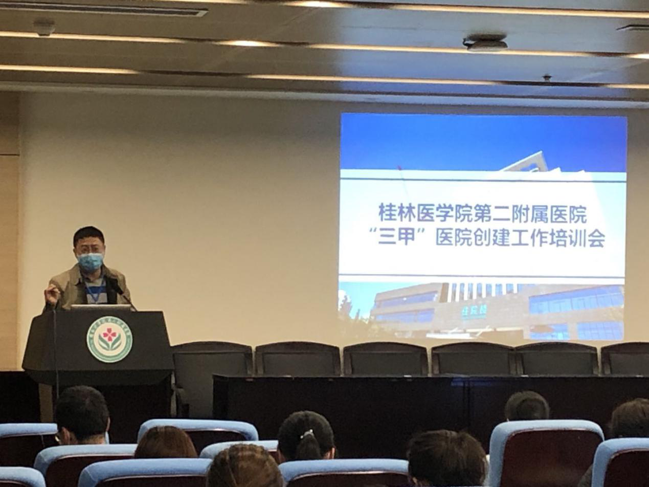 4月16日下午,桂林医学院第二附属医院等级办公室举办三甲创建工作专题培训会,全院临床医技科室主任、护长及联络员在PET-CT楼5楼会议室进行了创建工作专题培训学习,以进一步推进三甲医院创建工作有序开展。此次培训由副院长袁晟光主持。