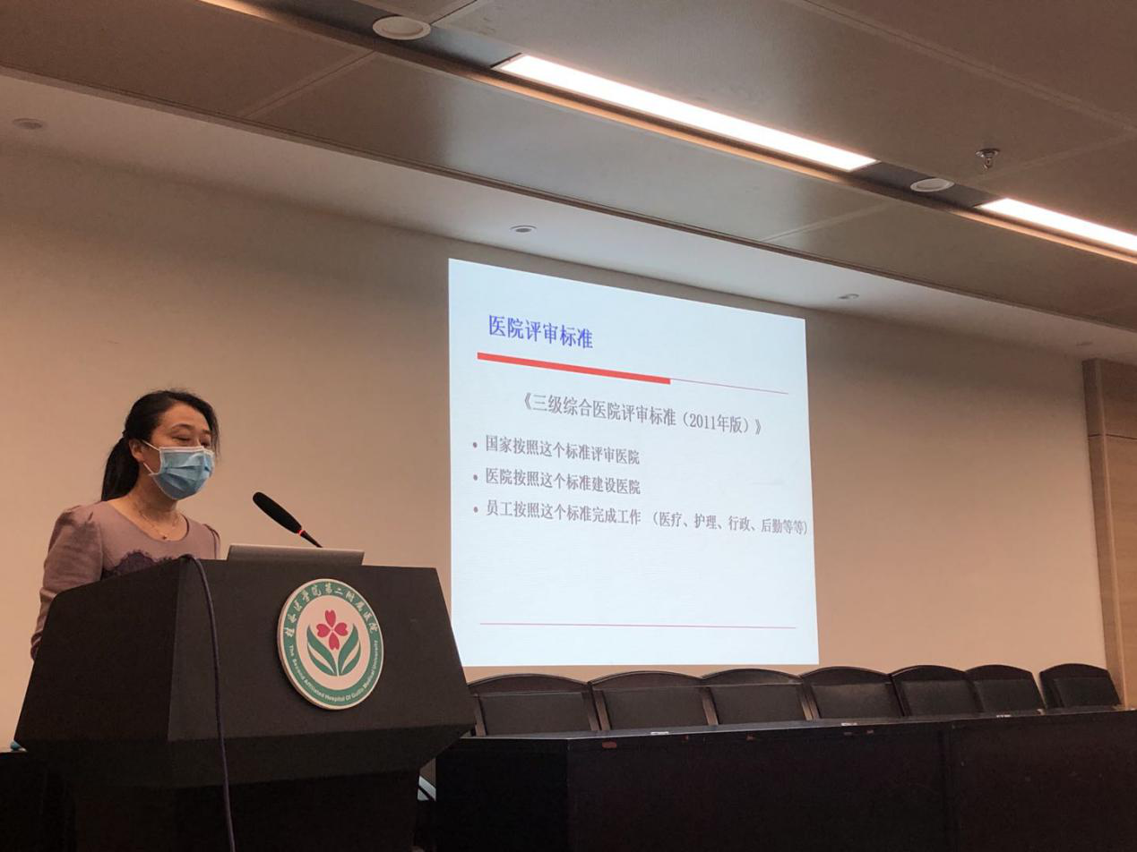 培训会上,等级办公室主任王莉从医院评审的新标准、新理念和新方法,三甲医院的要求以及三甲医院评审的工作准备等方面进行了详细介绍。她重点强调了三甲资料规范管理及制度落实的重要性,要求各科室主动适应医院评审的新方法,将三甲创建工作融入日常工作中,抓好制度的落实、不断督导和持续改进。