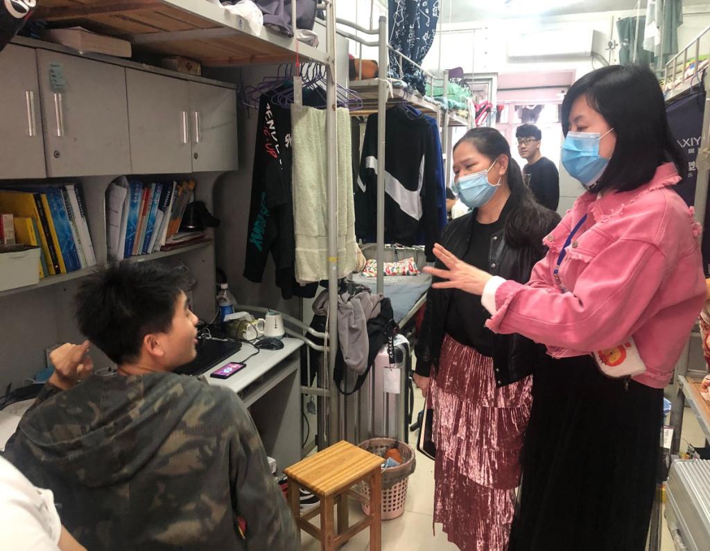 (黄晨副书记和黄艳芸老师检查临桂宿舍)