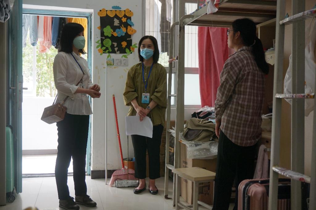 为更好落实学生开学新冠肺炎疫情防控工作,增强同学宿舍疫情防护意识,4月29日至30日,医学检验学院党总支副书记黄晨、辅导员黄艳芸老师和蒋小英老师分别对东城校区和临桂校区的宿舍进行了检查。