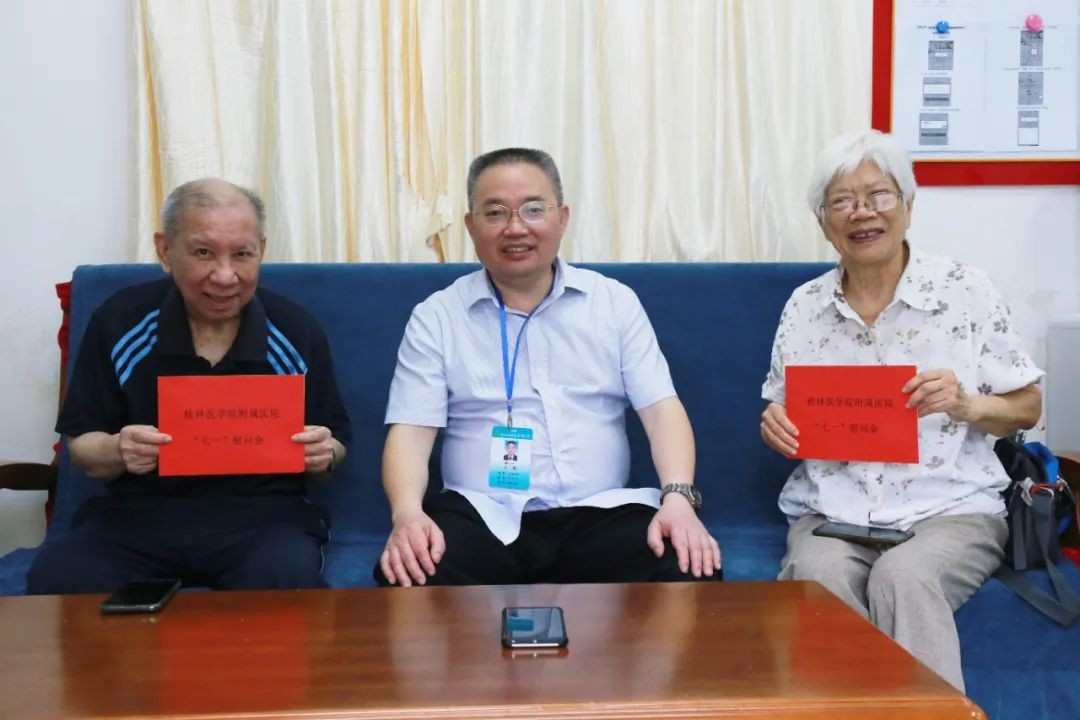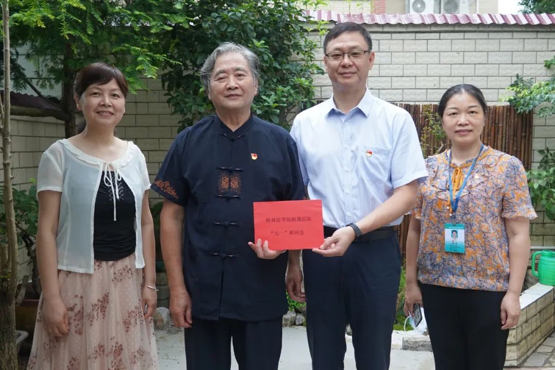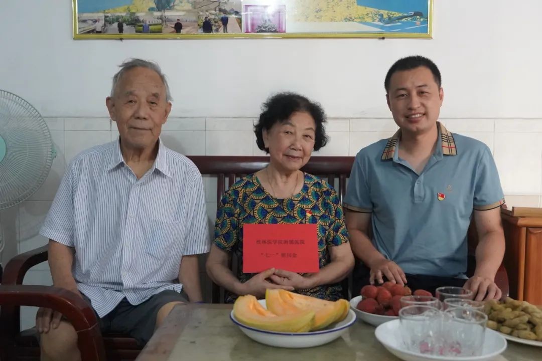 声声问候显真情,句句祝福暖人心。为充分体现党组织对党员的关心和爱护,进一步增强党组织凝聚力、影响力,在“七一”建党节来临之际,附属医院领导覃克强、汪丽燕、蒋尧传、滕若冰、王群、马礼兵、王振冉、陈东走访慰问老党员、困难党员、乡村振兴驻村工作队员,向他们送去党的温暖和关怀,并向他们致以崇高敬意和亲切问候。