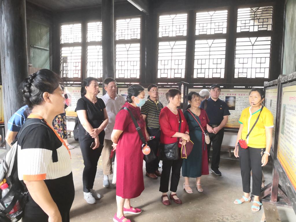 大家首先参观了灵川县九屋镇江头村廉政文化教育基地。江头村是有名的“清官村”,村里周姓出仕为官者200多人,他们秉持先祖周敦颐在《爱莲说》中“出淤泥而不染,濯清涟而不妖”的品格,清白做人,廉洁为官,勤政廉政,爱民惠民,留给后人丰富的廉政文化和精神食粮。老党员们在讲解员的带领下,参观了“爱莲家祠”,充分了解了“清官村”廉洁文化形成的历史和廉洁典范的事迹,这些文化不仅印刻在古建筑中,也印刻在江头洲人的血脉中,使参观的党员们深受触动和教育。