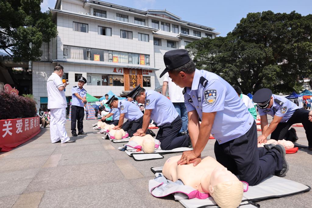 “如果每个人都能掌握最基本的急救知识,就能够挽救许多本不应该逝去的生命。”心肺复苏培训组的专家们还现场开展了大型心肺复苏急救培训。本次心肺复苏培训有近100人包括当地群众、警务工作者等参加。医护人员用通俗易懂的语言介绍了心肺复苏的基础理论知识、操作技术要点及注意事项,给大家普及了学习心肺复苏的重要性、紧迫性。