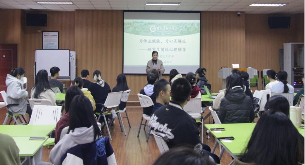 为帮助我校研究生科学应对学业科研压力,提升心理健康素养,11月20日下午,党委研究生工作部在临桂校区大学生活动中心举办“为学业赋能,为心灵减压”心理团体辅导活动。活动特邀桂林理工大学谭咏梅副教授担任主讲,党委研究生工作部全体领导老师和60余名研究生代表共同参与。